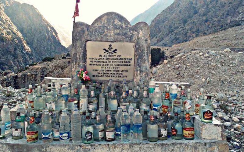Twenty-two years ago at Nelong valley India China border, three soldiers of FD regiment were searching for water and died due to the fallen glacier. Today also all soldiers, along with officers, never forget to keep a bottle of water on the memorial. The soldiers say that the martyrs often come in their dream sand demand for water from them for drinking.